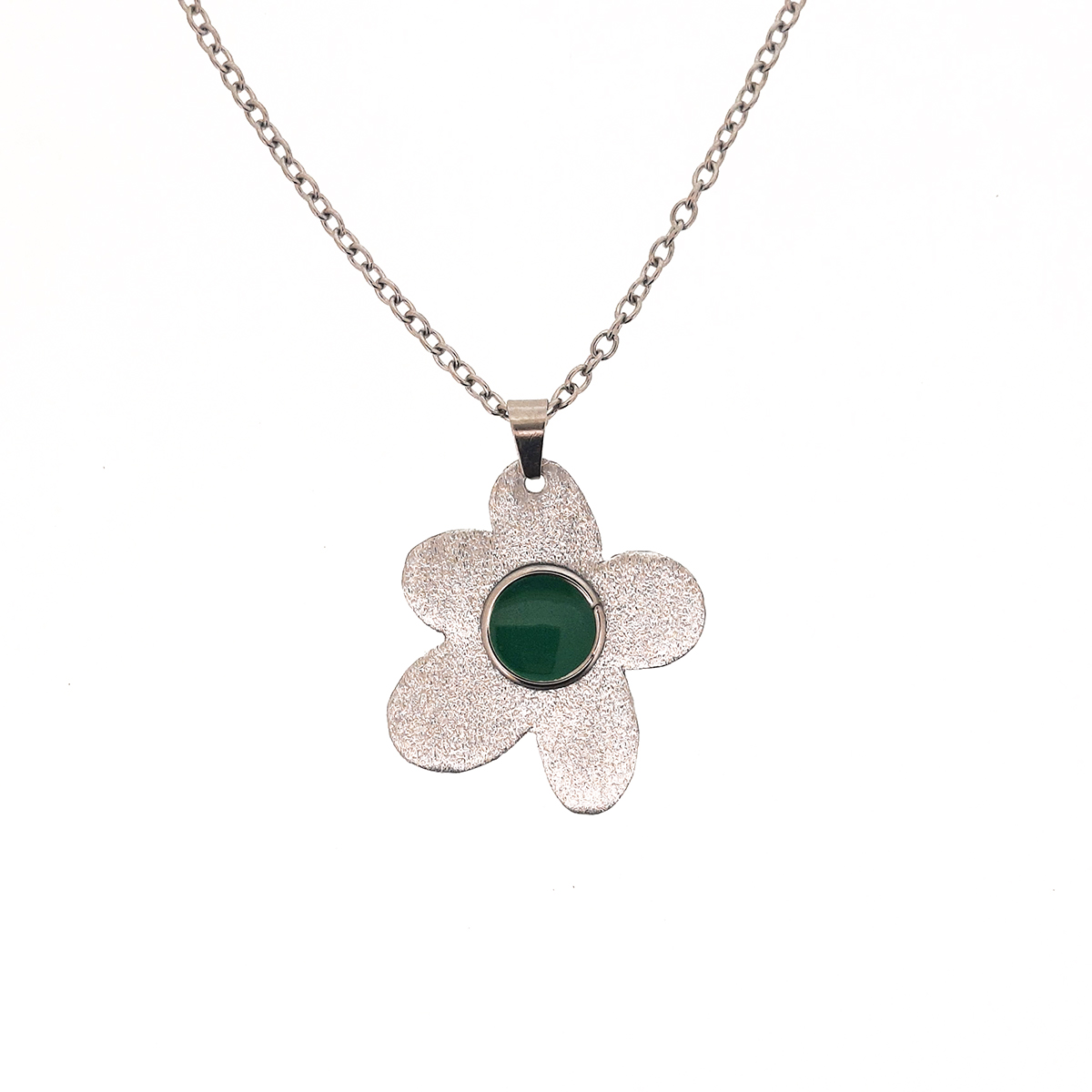 Κολιέ Χειροποίητο λουλούδι με πράσινο σμάλτο