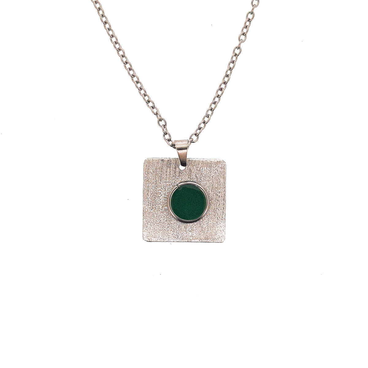 Κολιέ Χειροποίητο τετράγωνο με πράσινο σμάλτο