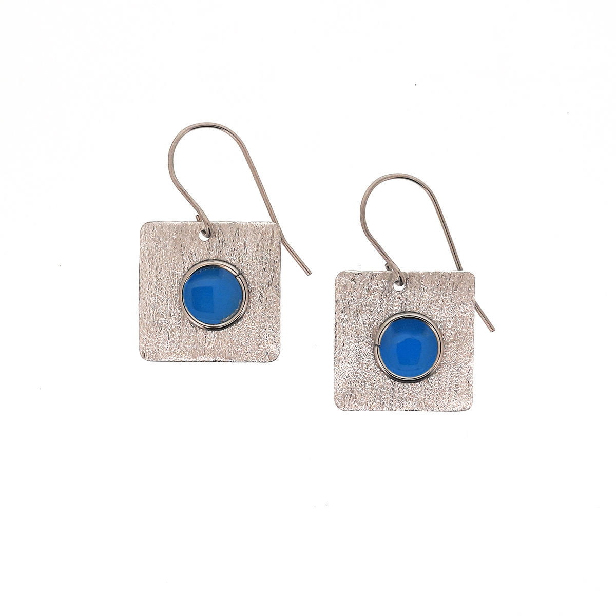 Σκουλαρίκια Χειροποίητα τετράγωνα με μπλε σμάλτο